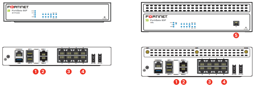 2. 2 x WAN GE RJ45 Ports, FG-80F-Bypass model only: